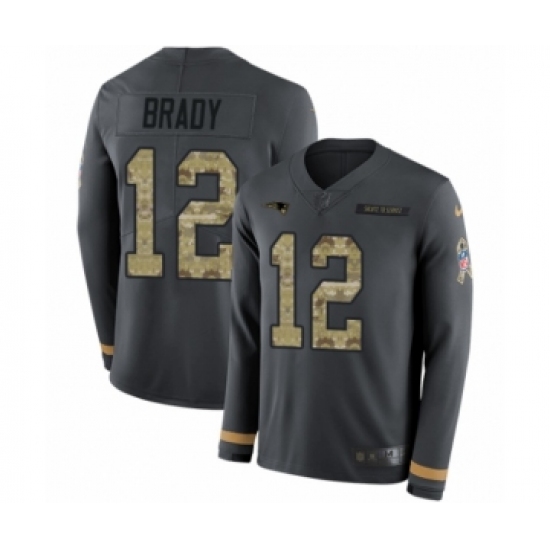 Men's Nike New England Patriots #12 Tom Brady Limited Black Salute to Service Therma Long Sleeve NFL Jersey