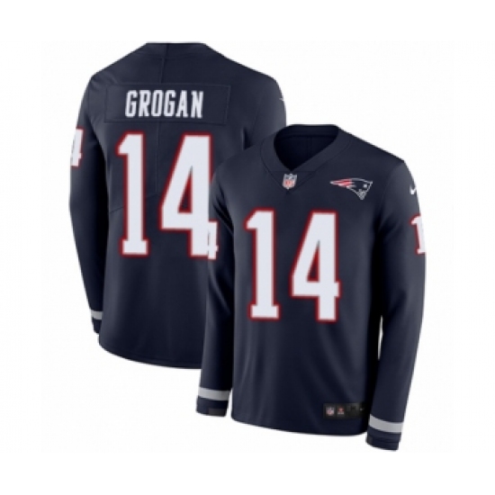 Men's Nike New England Patriots #14 Steve Grogan Limited Navy Blue Therma Long Sleeve NFL Jersey