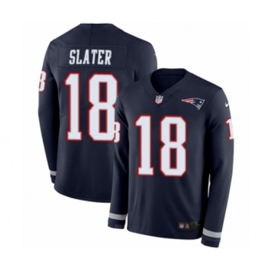 Men's Nike New England Patriots #18 Matthew Slater Limited Navy Blue Therma Long Sleeve NFL Jersey