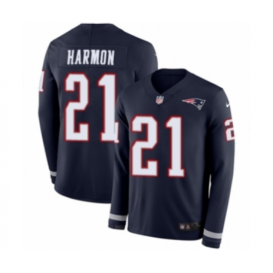 Men's Nike New England Patriots #21 Duron Harmon Limited Navy Blue Therma Long Sleeve NFL Jersey