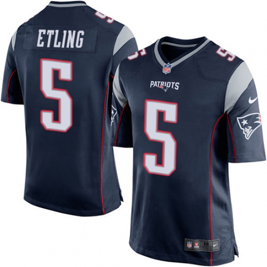Men's Nike New England Patriots #5 Danny Etling Game Navy Blue Team Color NFL Jersey