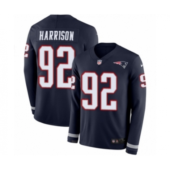 Men's Nike New England Patriots #92 James Harrison Limited Navy Blue Therma Long Sleeve NFL Jersey