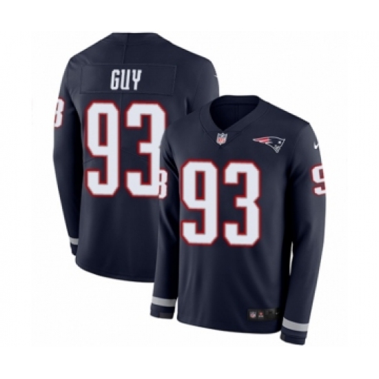 >Men's Nike New England Patriots #93 Lawrence Guy Limited Navy Blue Therma Long Sleeve NFL Jersey
