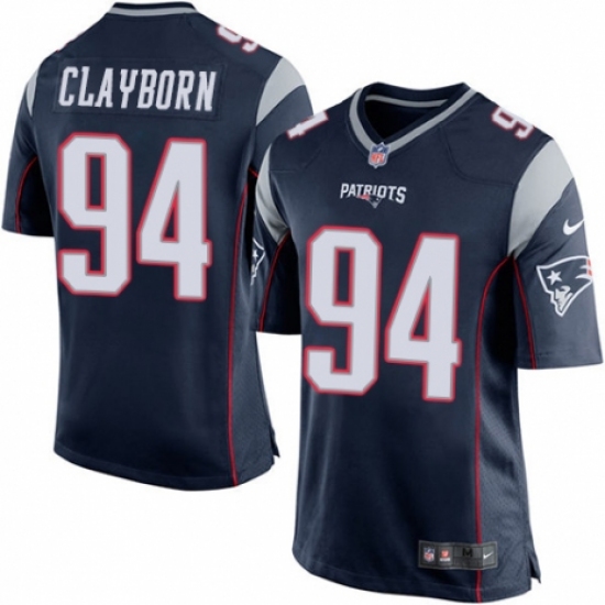 >Men's Nike New England Patriots #94 Adrian Clayborn Game Navy Blue Team Color NFL Jersey