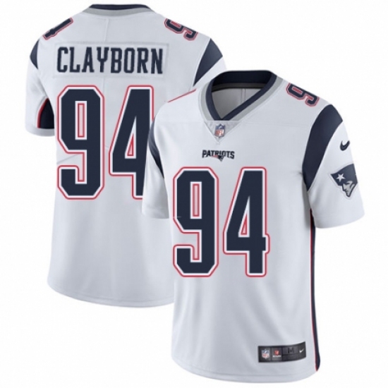 >Men's Nike New England Patriots #94 Adrian Clayborn White Vapor Untouchable Limited Player NFL Jersey