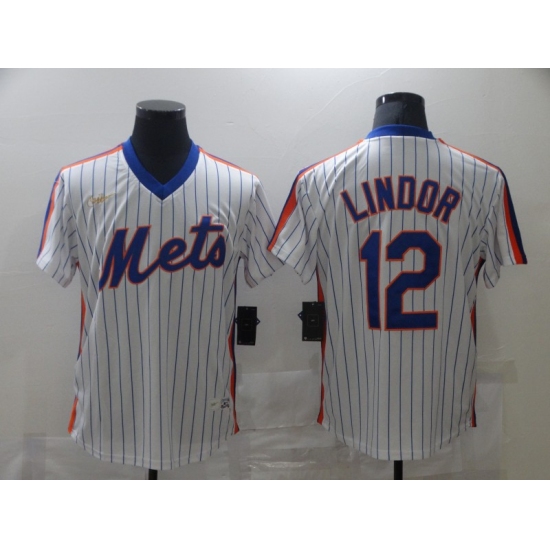 >Men's Nike New York Mets #12 Francisco Lindor White Authentic Jersey