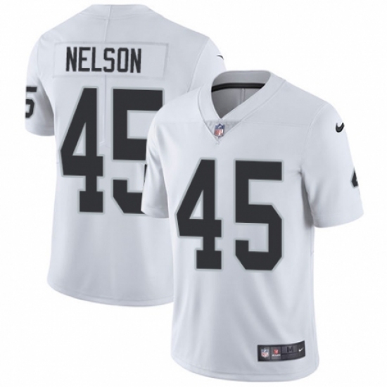 >Men's Nike Oakland Raiders #45 Nick Nelson White Vapor Untouchable Limited Player NFL Jersey