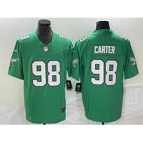 >Men's Nike Philadelphia Eagles #98 Jalen Carter Green 2023 F.U.S.E. Vapor Limited Throwback Stitched Football Jersey