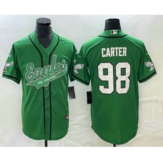 Men's Nike Philadelphia Eagles #98 Jalen Carter Green C Cool Base Stitched Baseball Jersey
