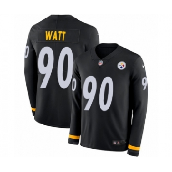 Men's Nike Pittsburgh Steelers #90 T. J. Watt Limited Black Therma Long Sleeve NFL Jersey