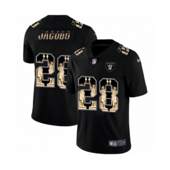 >Men's Oakland Raiders #28 Josh Jacobs statue of liberty black jersey