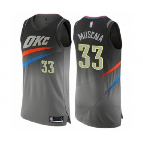 >Men's Oklahoma City Thunder #33 Mike Muscala Authentic Gray Basketball Jersey - City Edition