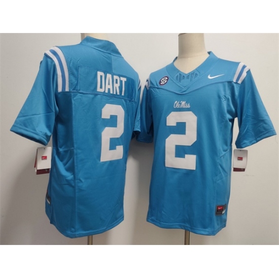 Men's Ole Miss Rebels #2 Jaxson Dart Powder Blue F.U.S.E. Stitched Football Jersey