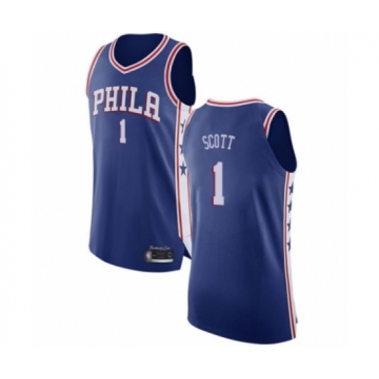 Men's Philadelphia 76ers #1 Mike Scott Authentic Blue Basketball Jersey - Icon Edition