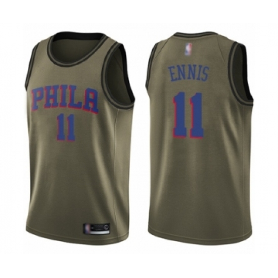 >Men's Philadelphia 76ers #11 James Ennis Swingman Green Salute to Service Basketball Jersey
