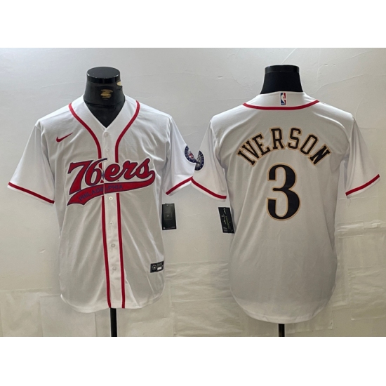Men's Philadelphia 76ers #3 Allen Iverson White With Cool Base Stitched Baseball Jersey
