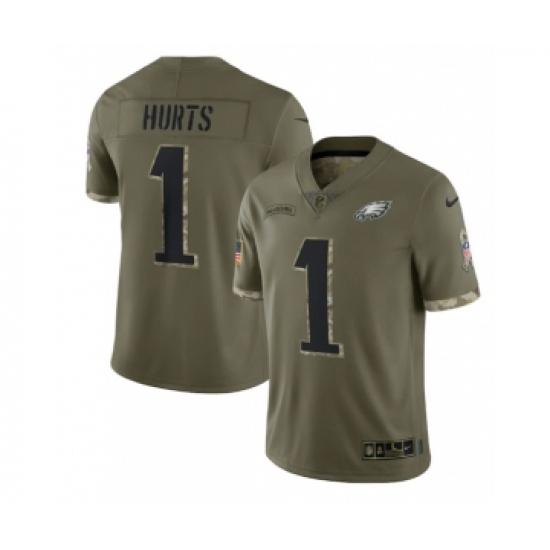 Men's Philadelphia Eagles #1 Jalen Hurts 2022 Olive Salute To Service Limited Stitched Jersey