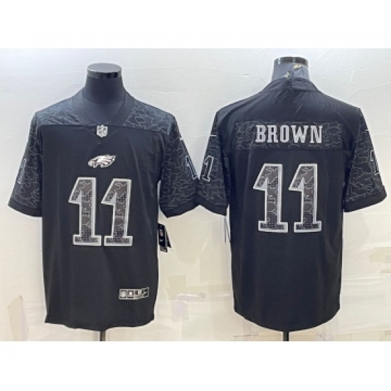 >Men's Philadelphia Eagles #11 AJ Brown Black Reflective Limited Stitched Football Jersey
