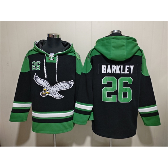 Men's Philadelphia Eagles #26 Saquon Barkley Black Ageless Must-Have Lace-Up Pullover Hoodie