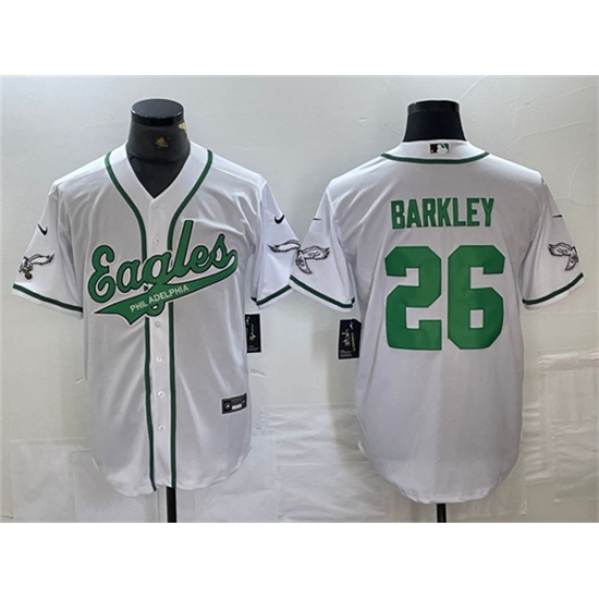 Men's Philadelphia Eagles #26 Saquon Barkley White Cool Base Baseball Stitched Jerseys