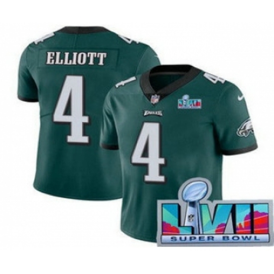 >Men's Philadelphia Eagles #4 Jake Elliott Limited Green Super Bowl LVII Vapor Jersey