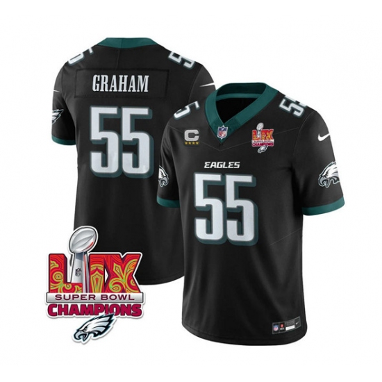 >Men's Philadelphia Eagles #55 Brandon Graham Black 2025 Eagles Logo Super Bowl LIX And 4-Star C New F.U.S.E. Vapor Limited Football Stitched Jersey