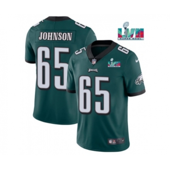 >Men's Philadelphia Eagles #65 Lane Johnson Green Super Bowl LVII Patch Vapor Untouchable Limited Stitched Jersey