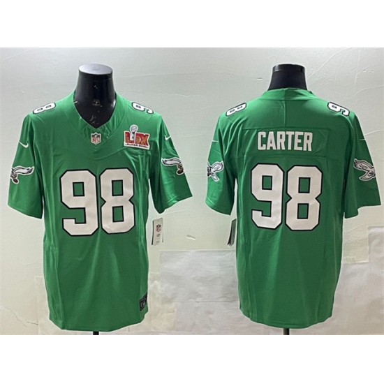 Men's Philadelphia Eagles #98 Jalen Carter Green 2025 Super Bowl LIX F.U.S.E. Throwback Vapor Untouchable Limited Stitched Football Jersey