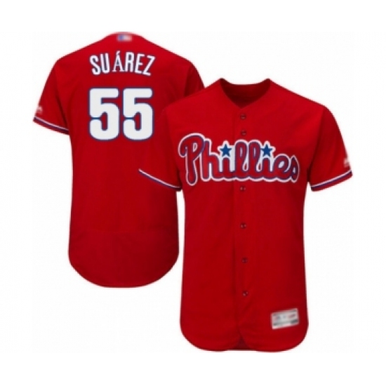 >Men's Philadelphia Phillies #55 Ranger Suarez Red Alternate Flex Base Authentic Collection Baseball Player Jersey