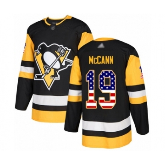 >Men's Pittsburgh Penguins #19 Jared McCann Authentic Black USA Flag Fashion Hockey Jersey