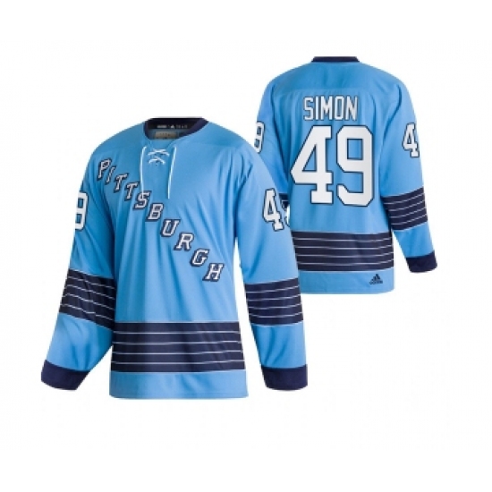 >Men's Pittsburgh Penguins #49 Dominik Simon 2022 Blue Classics Stitched Jersey