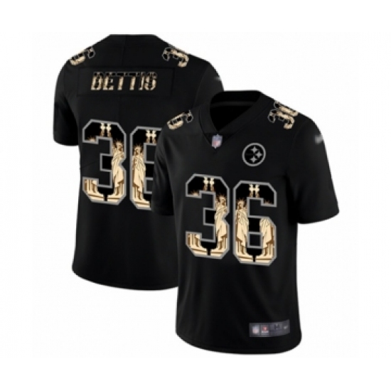 >Men's Pittsburgh Steelers #36 Jerome Bettis Limited Black Statue of Liberty Football Jersey