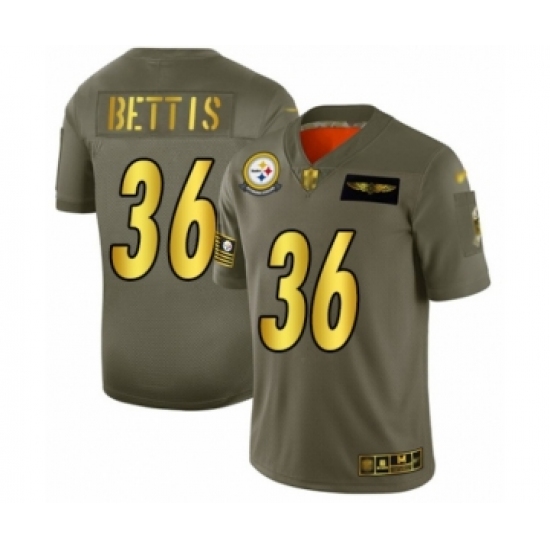>Men's Pittsburgh Steelers #36 Jerome Bettis Olive Gold 2019 Salute to Service Limited Player Football Jersey