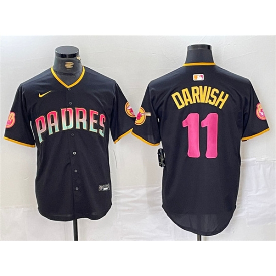>Men's San Diego Padres #11 Yu Darvish Black Cool Base Stitched Baseball Jersey