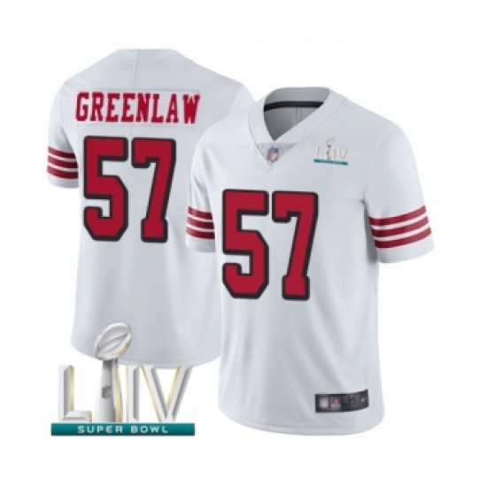 Men's San Francisco 49ers #57 Dre Greenlaw Limited White Rush Vapor Untouchable Super Bowl LIV Bound Football Jersey