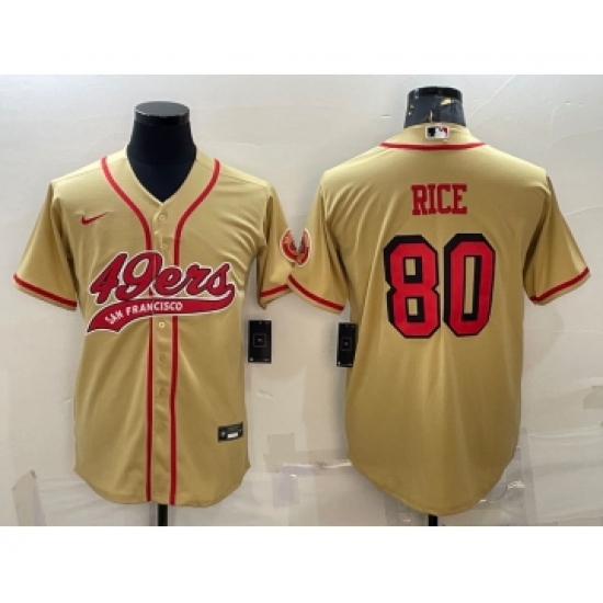 Men's San Francisco 49ers #80 Jerry Rice Gold Color Rush With Patch Cool Base Stitched Baseball Jersey
