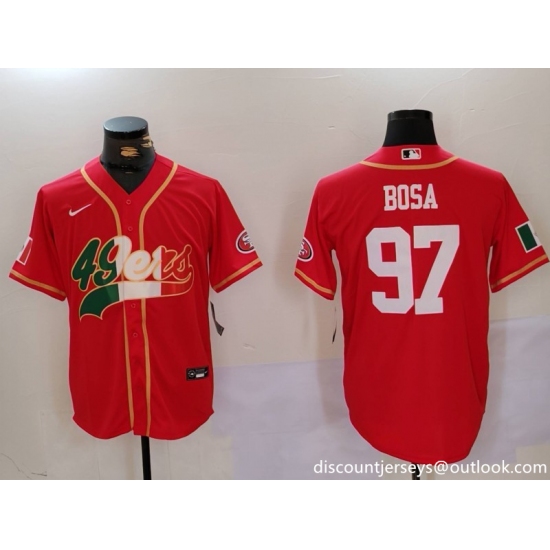 Men's San Francisco 49ers #97 Nick Bosa Red With Cool Base Stitched Baseball Jersey