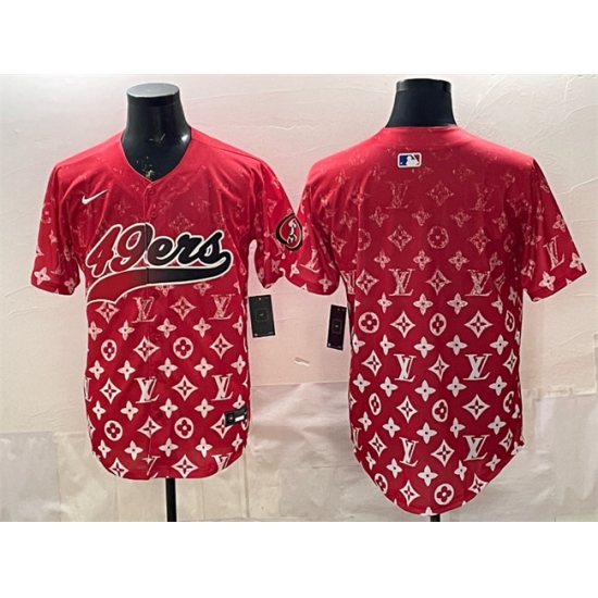 >Men's San Francisco 49ers Blank Red Limited Stitched Baseball Jersey