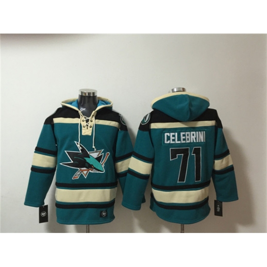 Men's San Jose Sharks #71 Macklin Celebrini Teal Lace-Up Pullover Hoodie