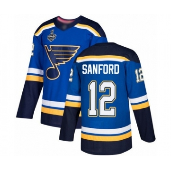 Men's St. Louis Blues #12 Zach Sanford Authentic Royal Blue Home 2019 Stanley Cup Final Bound Hockey Jersey