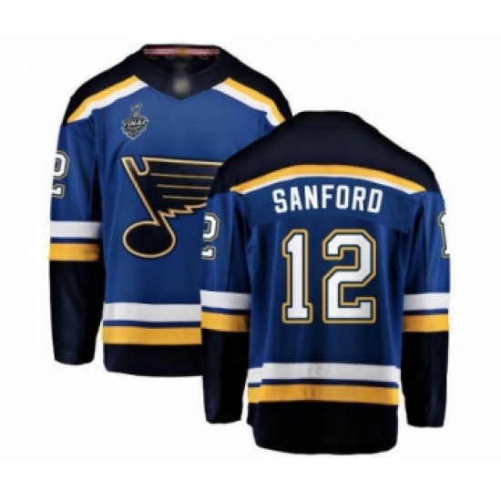Men's St. Louis Blues #12 Zach Sanford Fanatics Branded Royal Blue Home Breakaway 2019 Stanley Cup Final Bound Hockey Jersey