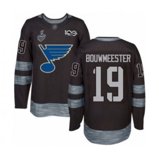 Men's St. Louis Blues #19 Jay Bouwmeester Authentic Black 1917-2017 100th Anniversary 2019 Stanley Cup Final Bound Hockey Jersey