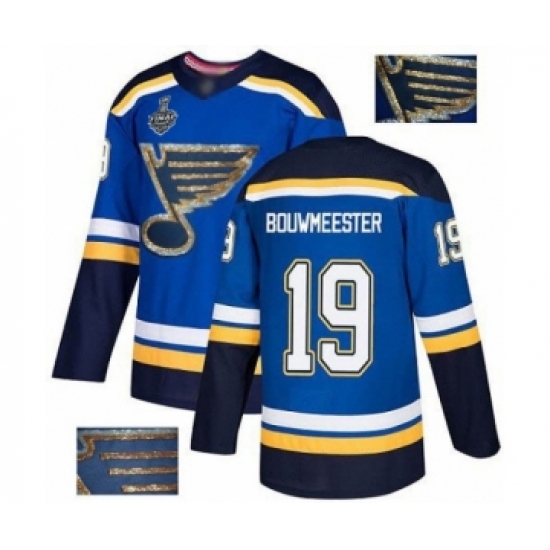 Men's St. Louis Blues #19 Jay Bouwmeester Authentic Royal Blue Fashion Gold 2019 Stanley Cup Final Bound Hockey Jersey