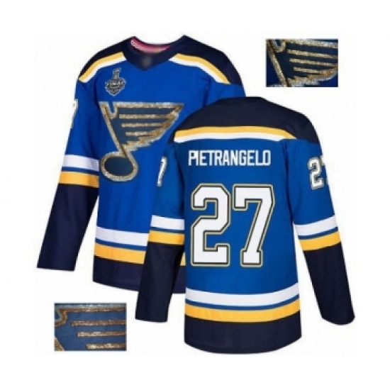 Men's St. Louis Blues #27 Alex Pietrangelo Authentic Royal Blue Fashion Gold 2019 Stanley Cup Final Bound Hockey Jersey