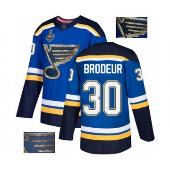 Men's St. Louis Blues #30 Martin Brodeur Authentic Royal Blue Fashion Gold 2019 Stanley Cup Final Bound Hockey Jersey