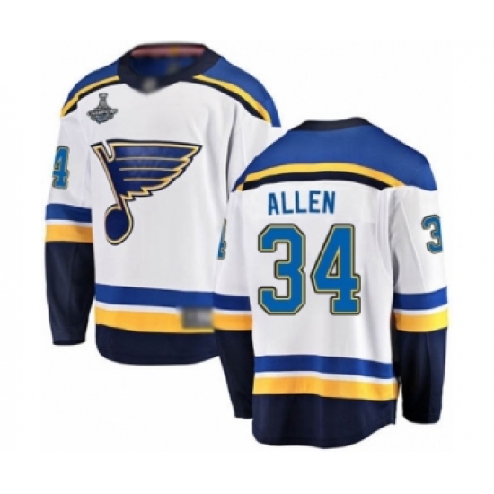 Men's St. Louis Blues #34 Jake Allen Fanatics Branded White Away Breakaway 2019 Stanley Cup Champions Hockey Jersey