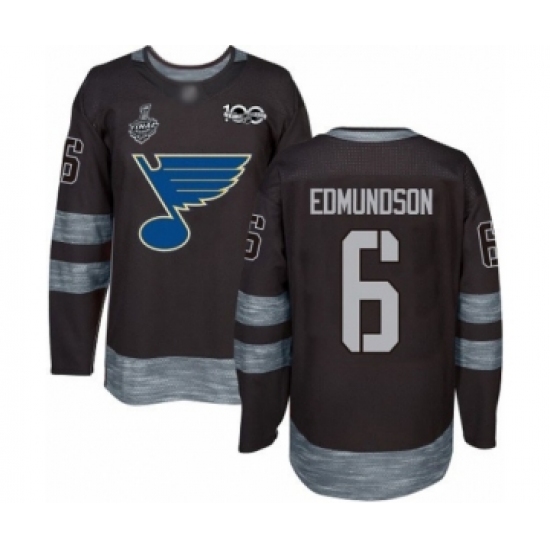 Men's St. Louis Blues #6 Joel Edmundson Authentic Black 1917-2017 100th Anniversary 2019 Stanley Cup Final Bound Hockey Jersey