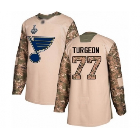 >Men's St. Louis Blues #77 Pierre Turgeon Authentic Camo Veterans Day Practice 2019 Stanley Cup Final Bound Hockey Jersey