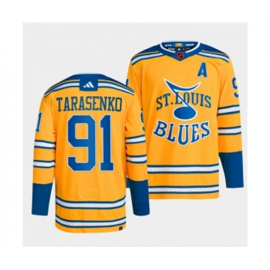 Men's St. Louis Blues #91 Vladimir Tarasenko Yellow 2022-23 Reverse Retro Stitched Jersey