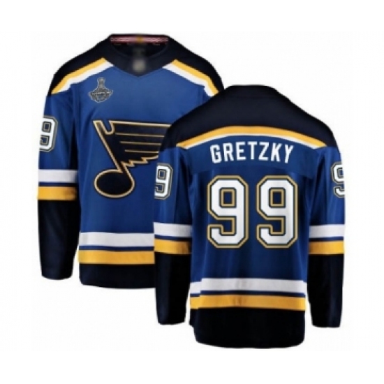 Men's St. Louis Blues #99 Wayne Gretzky Fanatics Branded Royal Blue Home Breakaway 2019 Stanley Cup Champions Hockey Jersey